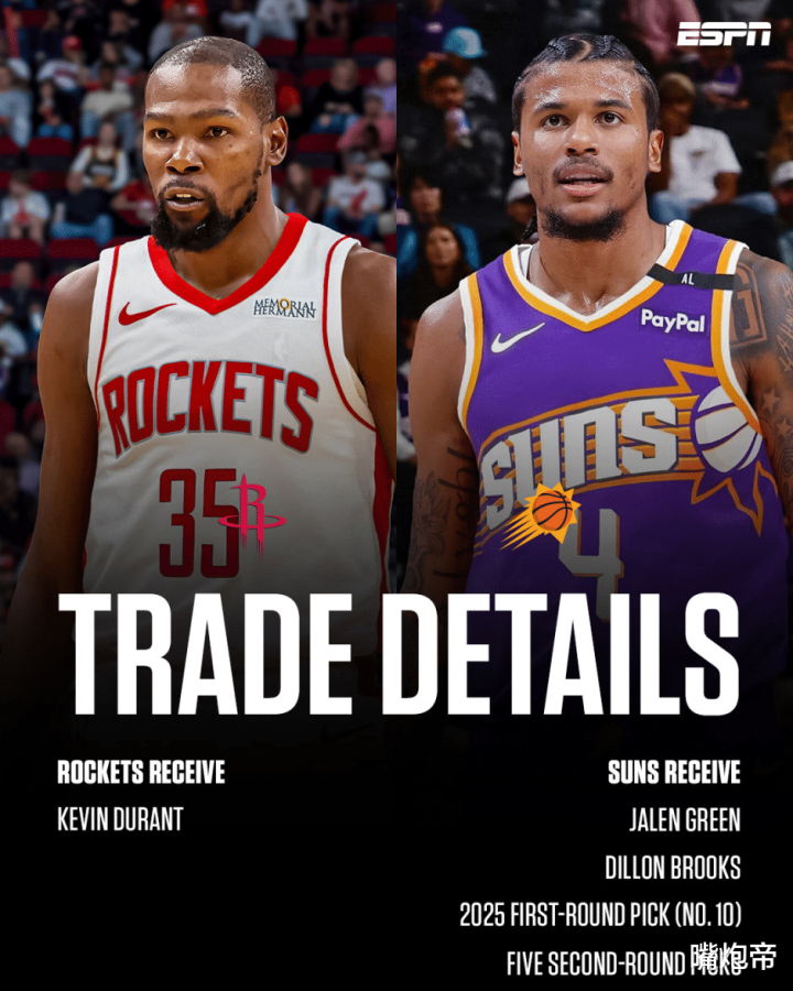 现在他们最大的问题是想想让一个37岁的杜兰特当老大,但你不能让雇佣兵当核心,一支球队的核心一定是值得信赖的人。他能做一时的打手,但是火箭想一飞冲天,只能靠自己的青年军。杜兰特是锦上添花的那个人,但是你不能指望他雪中送炭。